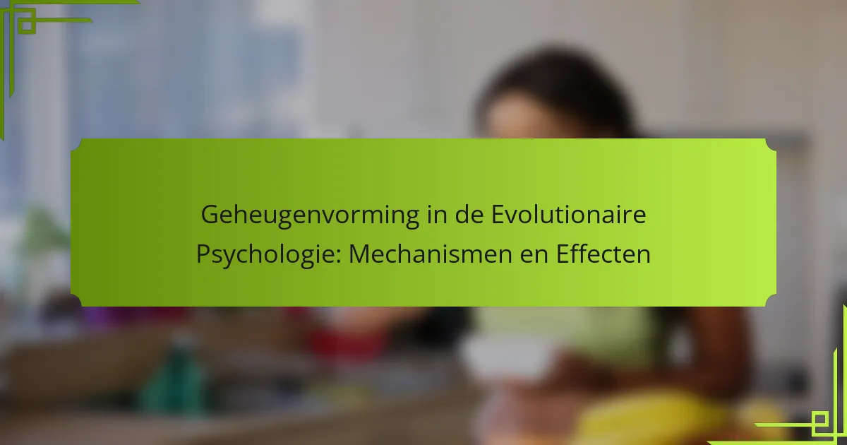 Geheugenvorming in de evolutionaire psychologie houdt in dat we begrijpen hoe herinneringen worden gecreëerd en opgeslagen om de overleving te verbeteren. Dit proces wordt beïnvloed door mechanismen zoals natuurlijke selectie, die eigenschappen bevoordeelt die het behoud van geheugen voor omgevingssignalen verbeteren. Bijvoorbeeld, het onthouden van de locatie van voedselbronnen of potentiële bedreigingen vergroot de kans op overleving. Unieke kenmerken van geheugenvorming omvatten de emotionele impact van ervaringen, die het terughalen kunnen verbeteren. Bovendien kunnen zeldzame kenmerken zoals de invloed van sociale interacties op geheugen groepsgedrag vormen, wat het belang van geheugen in evolutionaire contexten verder benadrukt.